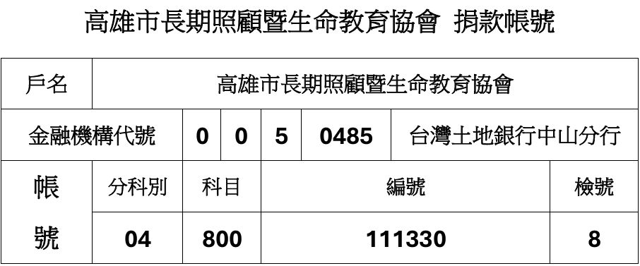 感謝您對我們協會的支持!您的慷慨捐款,不僅是物質上的支持,更是心靈上的溫暖,讓我們能夠持續推動各項公益活動,幫助長照計劃的推行。